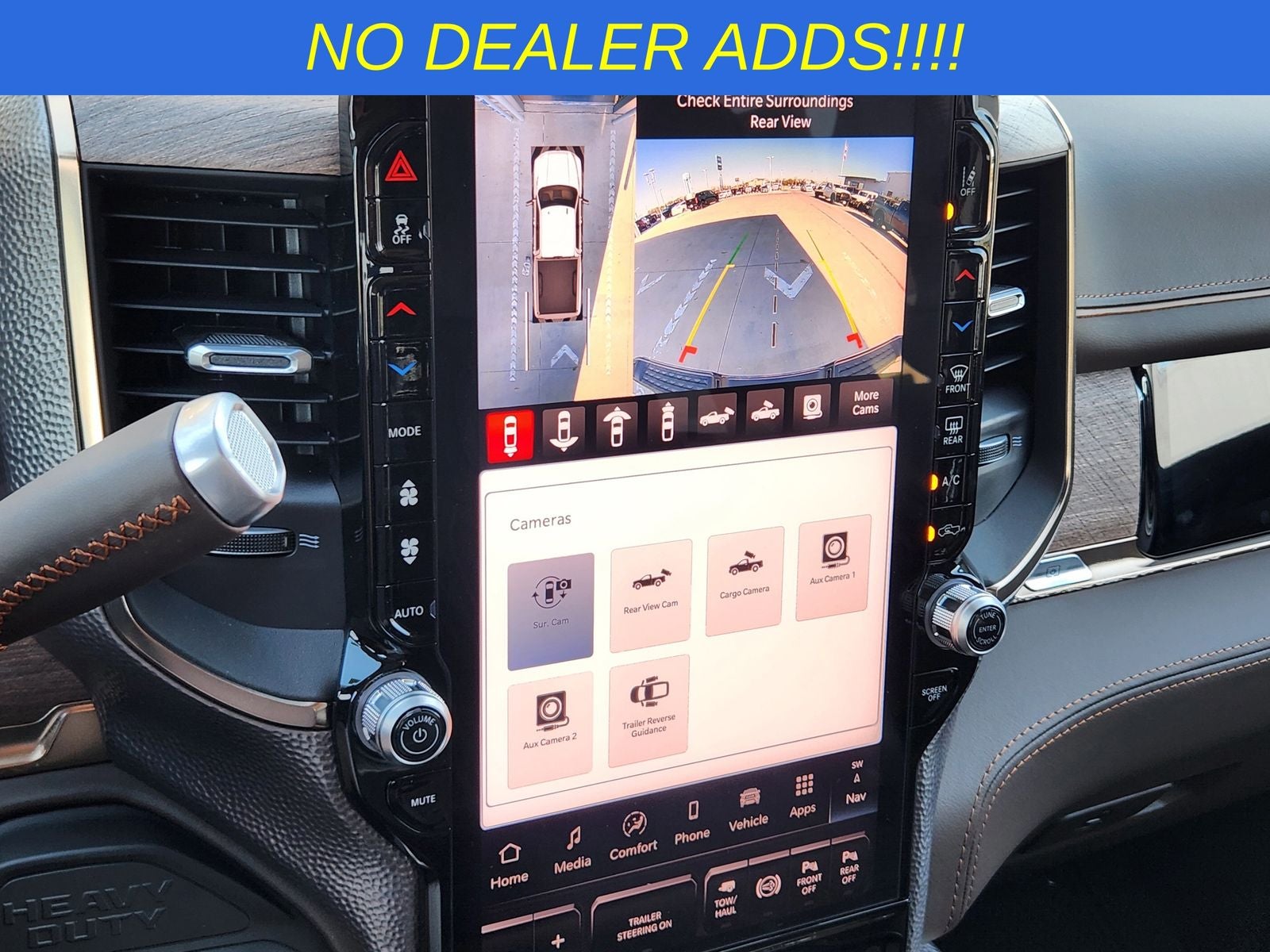 This 2026 Ram 2500 Limited in Diamond Black Crystal Pearlcoat comes nicely equipped with the following features: 6.7L I6 8-Speed Automatic 4WD Longhorn Level 1 Equipment Group (Active Lane Management System, Adaptive Steering System, Anti-Spin Differential Rear Axle, Center Stop Lamp with Cargo View Camera, Digital Rearview Mirror, Drowsy Driver Detection, LED Bed Lighting, MOPAR Spray in Bedliner, MOPAR Trailer Camera Wiring with No Camera, Power Deployable Running Boards, Surround View Camera System, Traffic Sign Recognition, Trailer Reverse Guidance, and Trailer Tire Pressure Monitoring System), Quick Order Package 24K Longhorn (I/P Aluminum Litho Bezels with Real Wood #1, Longhorn Badge, Longhorn Instrument Cluster Theme 3, Luxury Front and Rear Floor Mats, Premium Filigree Leather Seats, and Warm Chrome Key Fob), Tow Technology Plus Group (Digital 3.0 Rear View Auto Dimming Mirror and Trailer Reverse Steering Control), 17 Speakers, 3.42 Axle Ratio, 4-Wheel Disc Brakes, 5th Wheel/Gooseneck Towing Prep Group, ABS brakes, Adjustable pedals, Air Conditioning, Alloy wheels, AM/FM radio: SiriusXM with 360L, Apple CarPlay/Android Auto, Audio memory, Auto High-beam Headlights, Auto-dimming door mirrors, Auto-dimming Rear-View mirror, Automatic temperature control, Black Wheel Center Hub, Bodyside moldings, Brake assist, Bumpers: body-color, Clearance Lamps, Compass, Delay-off headlights, Driver door bin, Driver vanity mirror, Dual front impact airbags, Dual front side impact airbags, Electronic Stability Control, Engine Block Heater, Front anti-roll bar, Front Bucket Seats, Front Center Armrest w/Storage, Front dual zone A/C, Front fog lights, Front License Plate Bracket, Front reading lights, Fully automatic headlights, Garage door transmitter, Genuine wood console insert, Genuine wood dashboard insert, Genuine wood door panel insert, harman/kardon® Speakers, Heated door mirrors, Heated front seats, Heated rear seats, Heated steering wheel, Illuminated entry, Leather steering wheel, Low tire pressure warning, Manufacturer's Statement of Origin, Memory seat, Navigation System, Occupant sensing airbag, Outside temperature display, Overhead airbag, Overhead console, Panic alarm, ParkView Rear Back-Up Camera, Passenger door bin, Passenger vanity mirror, Pedal memory, Pickup Box, Power door mirrors, Power driver seat, Power passenger seat, Power steering, Power Sunroof, Power windows, Radio data system, Radio: Uconnect 5 Nav with 14.4 Display, Rain sensing wipers, Rear anti-roll bar, Rear reading lights, Rear seat center armrest, Rear step bumper, Rear window defroster, Remote keyless entry, Security system, Speed control, Split folding rear seat, Steering wheel mounted audio controls, Tachometer, Tilt steering wheel, Traction control, Trip computer, Turn signal indicator mirrors, Ultra Premium Leather Seats, Variably intermittent wipers, Vendor Painted Cargo Box, Vendor Painted Cargo Box Tracking, Ventilated front seats, Voltmeter, and Wheels: 20 x 8 Diamond Cut Aluminum. Limited 6.7L I6 8-Speed Automatic 4WD