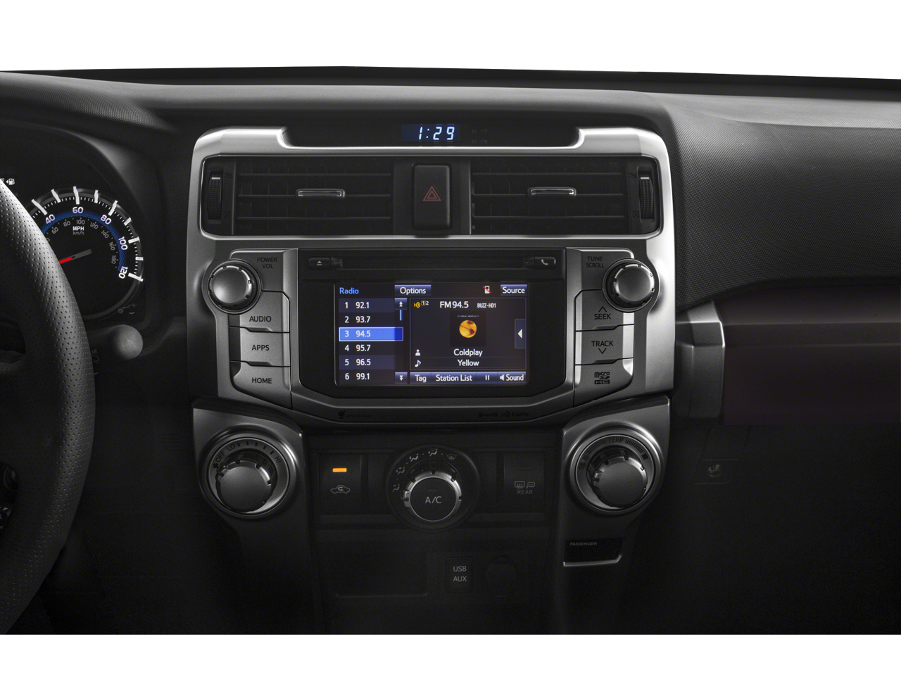 - Radio: Entune Audio Plus -inc: 6.1" high-resolution touch-screen display, AM/FM/HD Radio, CD player, 8-speakers, auxiliary port, USB 2.0 port, advanced voice recognition, hands-free phone capability, phone book access and music streaming via Bluetooth® wireless technology, Scout GPS Link compatible, Siri Eyes Free and SiriusXM satellite radio w/3-month all access trial See toyota.com/entune for details.