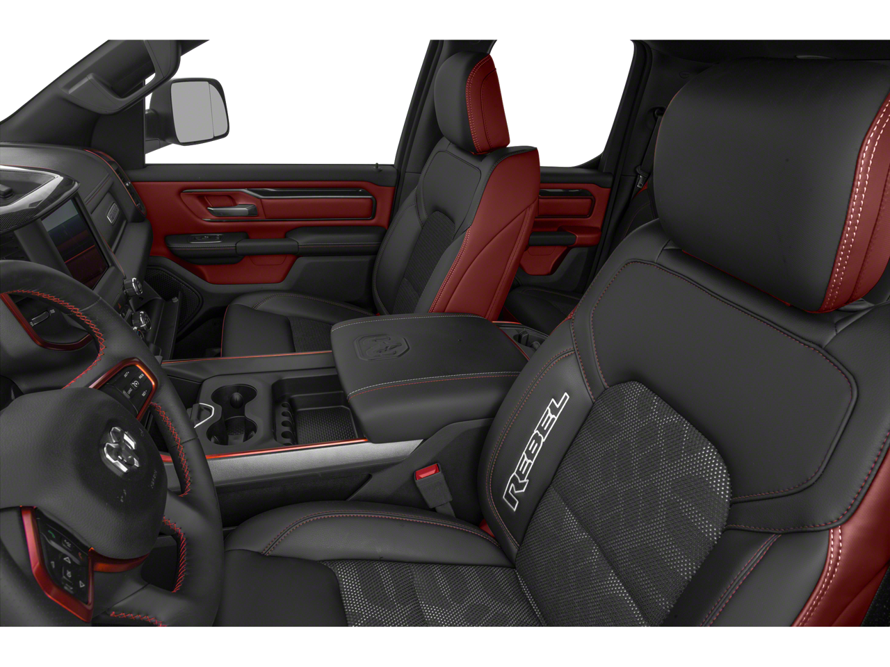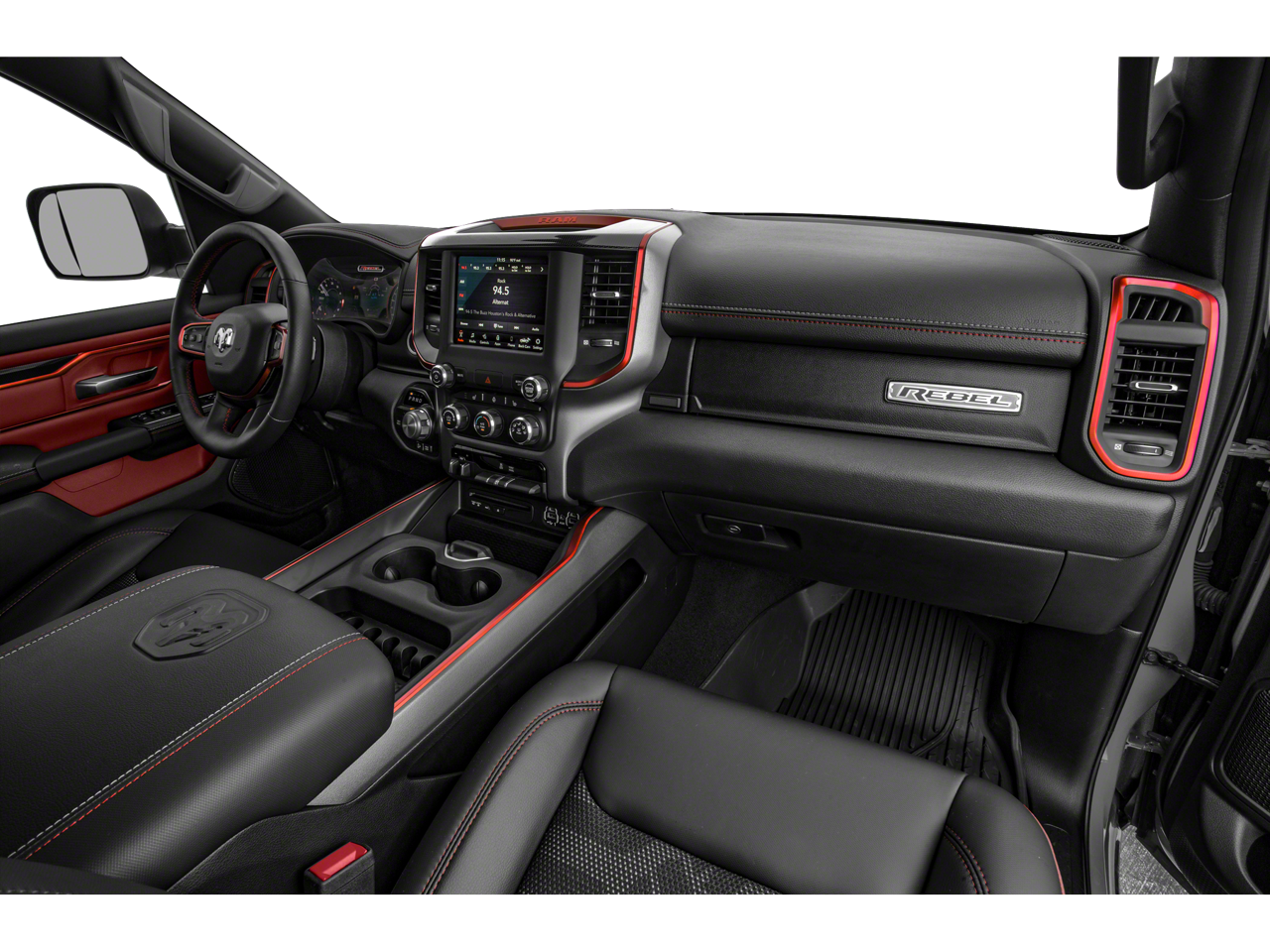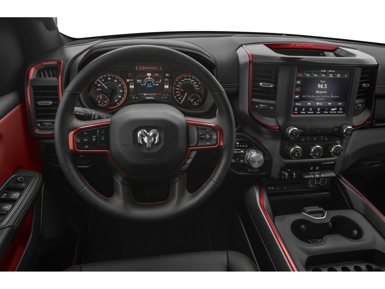 The interior of this Rebel is equally impressive, with a host of premium features designed to keep you comfortable and connected. Enjoy the convenience of remote start, heated front seats, and a heated steering wheel, all while staying entertained with the Uconnect 4C navigation system and its 8.4-inch touchscreen display.