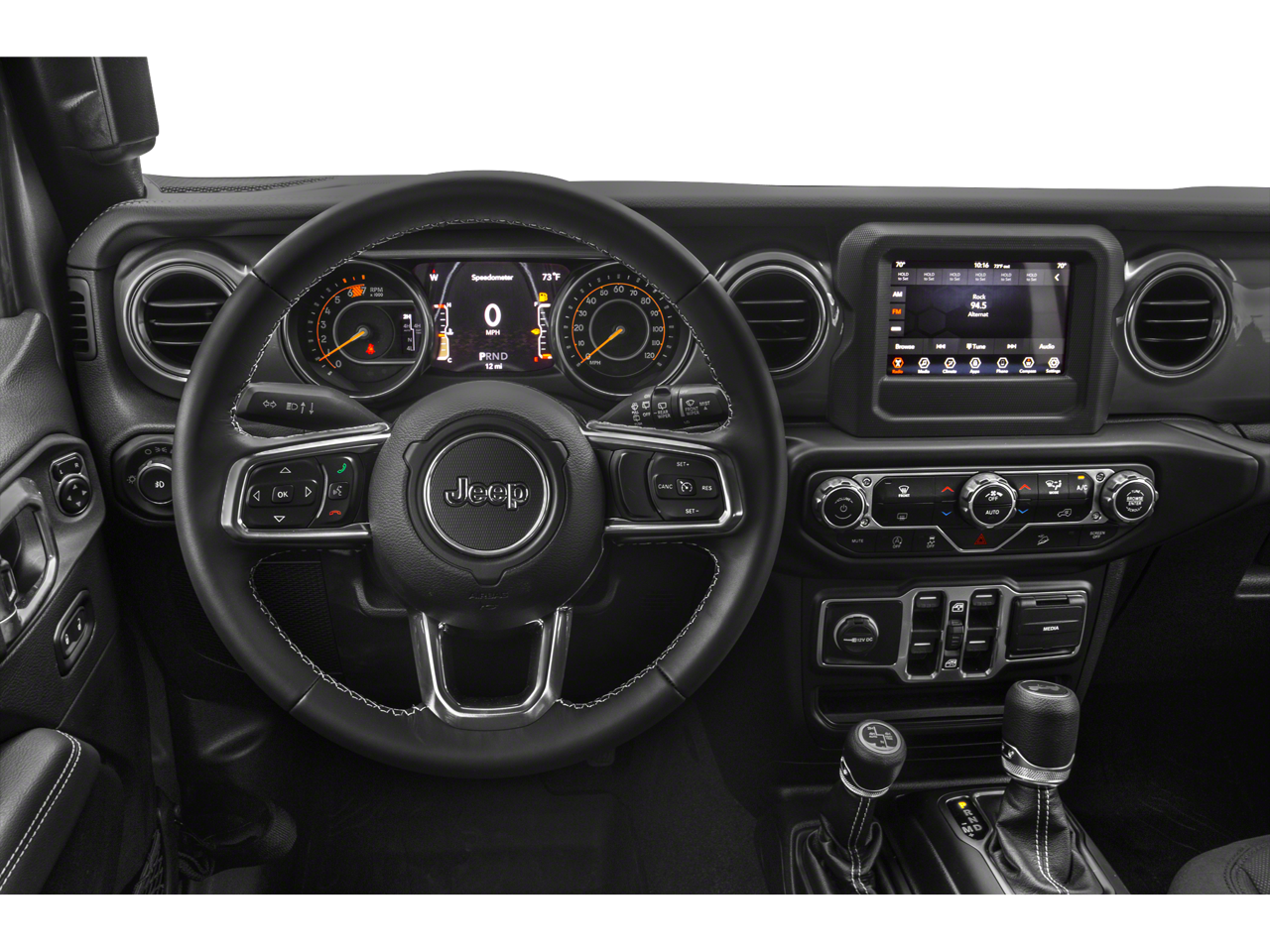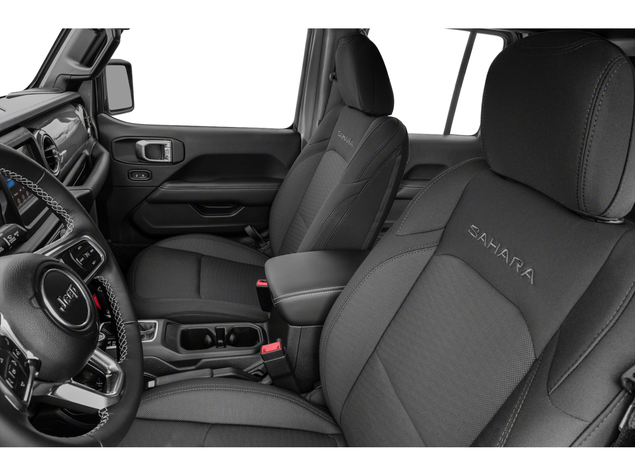 Inside, you'll find a well-appointed cabin with features like dual-zone automatic climate control, a 7-inch touchscreen infotainment system with Apple CarPlay and Android Auto, and a leather-wrapped steering wheel and shift knob. The Sahara Altitude also boasts a host of advanced safety technologies, including ParkView Rear Back-Up Camera, Brake Assist, and Electronic Stability Control, ensuring a confident and secure driving experience.