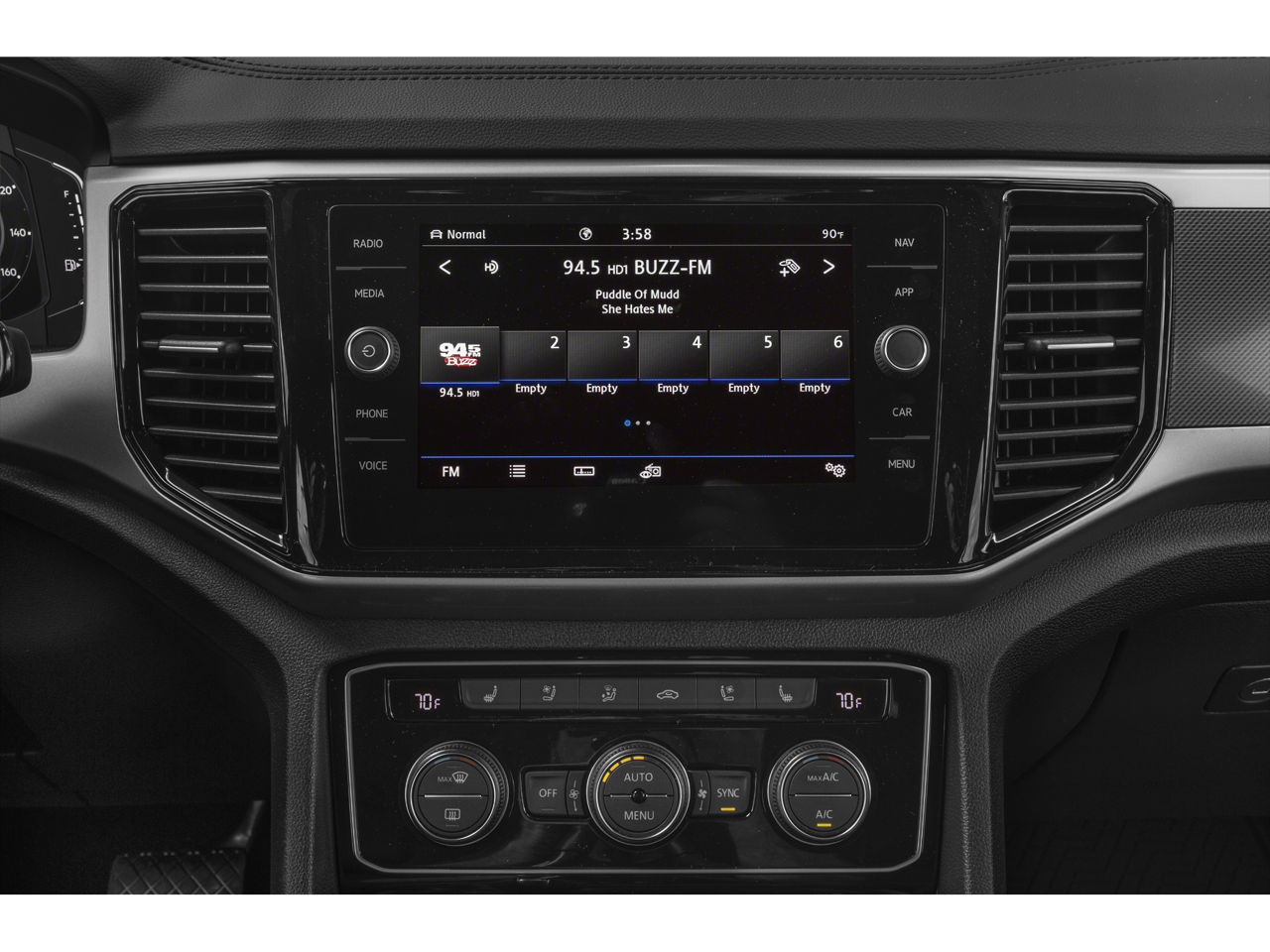 - Radio: MIB3 Discover Media w/8" Touchscreen Navigation -inc: AM/FM/HD Radio, WMA/MP3/FLAC player w/USB-C, voice control, capability for in-vehicle 4G LTE enabled Wi-Fi (cellular data plan required; includes limited trial), capability for VW Car-Net services (capabilities for certain services vary; requires enrollment or subscription), Fender premium audio system w/center speaker and subwoofer, Bluetooth® connectivity (for compatible devices), SiriusXM w/360L (w/3-month all access trial; 360L services require acceptance of Car-Net terms), App-Connect smartphone integration (w/Apple CarPlay, Android Auto and MirrorLink) via USB and wireless App-Connect smartphone integration (for compatible devices) w/multi-phone pairing capability