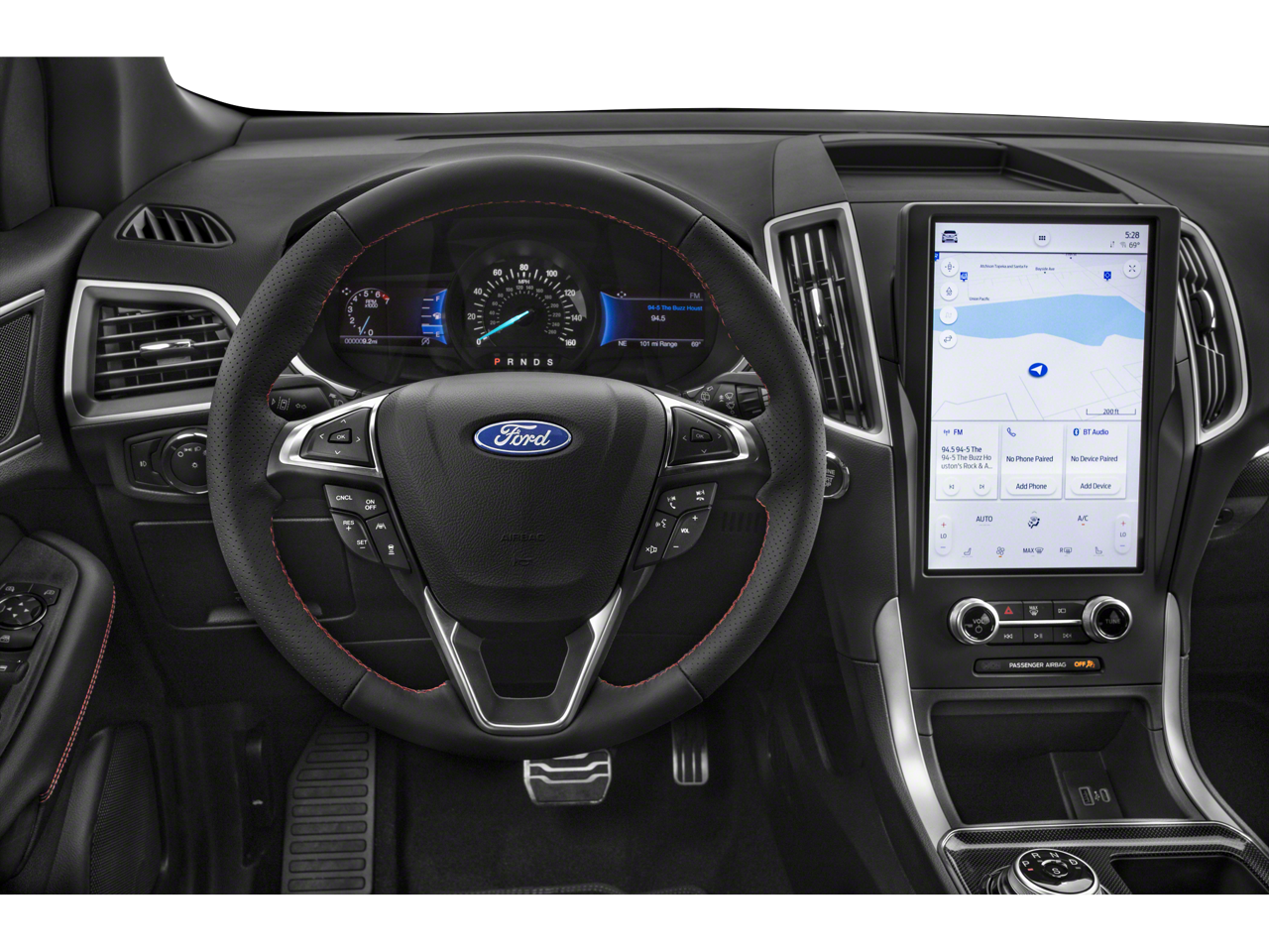 The interior of the Edge ST Line is just as impressive, with features like heated front seats, a power driver's seat, and a premium audio system with SiriusXM. The ActiveX seating material provides a luxurious and durable touch, while the rear parking sensors and power liftgate add convenience and functionality to your daily driving.